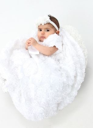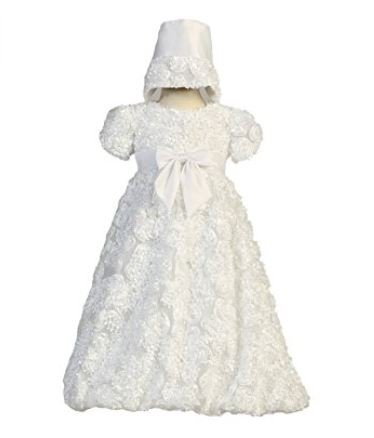 新生児リボンチュールドレス Daisy アメリカ老舗のドレスウェアブランドLITOより... ドレス一面に小さな花びらをまとったお花が装飾され贅沢でとても美しいドレスです。 ウエストの前後には白サテン生地の大きなリボンが上品で可愛いアクセントに。 背中側にパールのボタン3つでお着替えがしやすくなっています。 お揃いの帽子はクラシカルなヨーロッパ調。首の下でひもを結ぶ形です。 総丈約60cm。赤ちゃんの足をすっぽり覆うロング丈です。 新生児の退院着、写真撮影、お宮参りなどにピッタリです。 きっと気に入っていただけると思います♪ Made in USA (LITOはドレス業界には珍しくアメリカ製であることを誇りとしております) 注)パソコン上での表示される色は各モニターの性能や設定により異なる場合がございます。 【サイズ】 0-3ヵ月 総丈:59cm 身幅:21cm 3-6ヶ月 総丈:61cm 身幅:23cm
