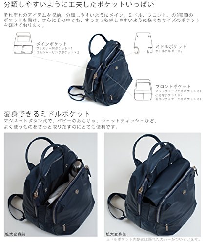 スマートながら大容量 ママライフをポジティブにアップデート。 スマートな外観とはうらはらに、ママに嬉しい多彩な工夫が沢山。 お洒落でスマートにデザインされたPixie B’Bag、 育児卒業後もライフスタイルに合わせて、大活躍してくれることでしょう。 バッグの中で物が迷子にならないよう、収納しやすいポケットが充実。 表面ミドルポケットは、マグネットタイプのボタンを。 片手で開閉がしやすいのもポイントです。 取りはずして洗えるおしゃぶりポーチ付 その日の気分に合わせてデイリーバッグ仕様に。