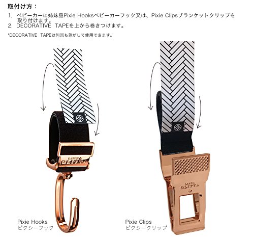 - ※姉妹品のベビーカーフックPixie Hooks、ブランケットクリップ pixie Clips専用の飾りテープです。