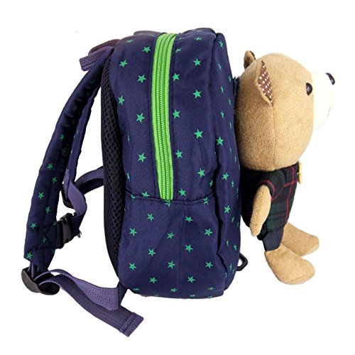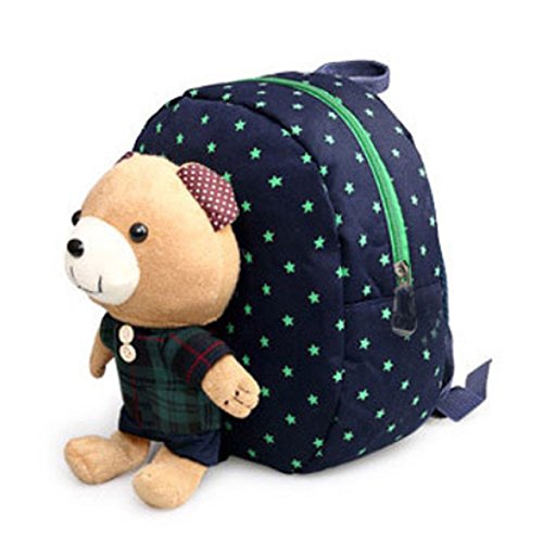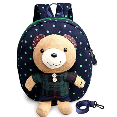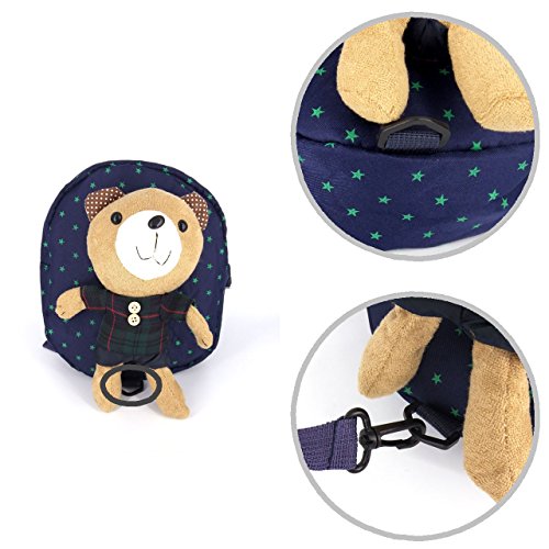 LO-aspos 子供 用 小熊 リュック サック 迷子 防止 紐 ぬいぐるみ 付 ベビー 幼児 (紺×チェック柄)