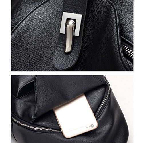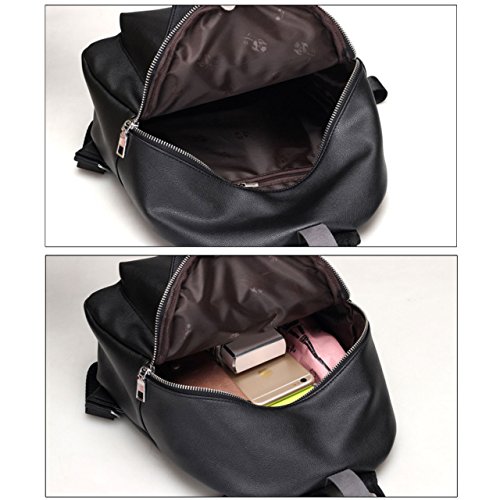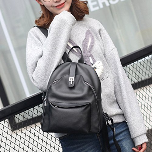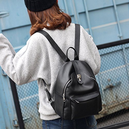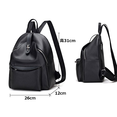 LO-aspos レディース 軽量 シンプル リュック サック バックパック マザーズバック 通学 通勤 旅行 (黒 PUレザー)