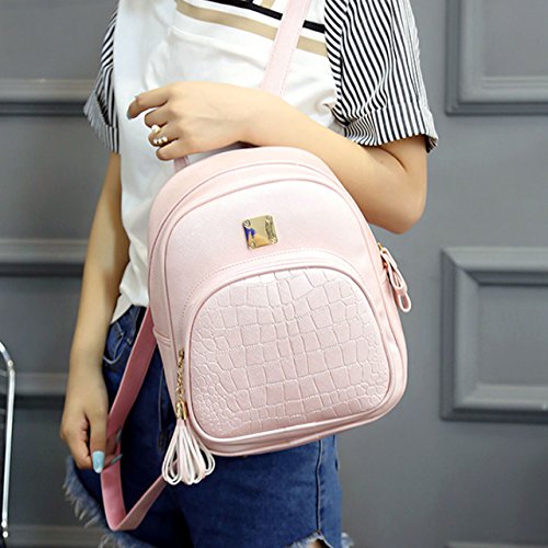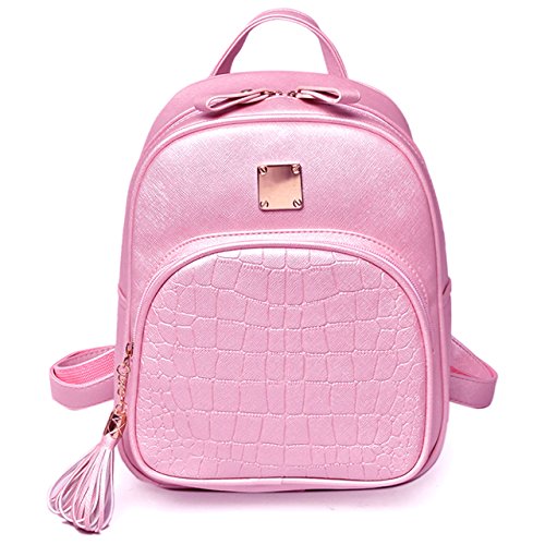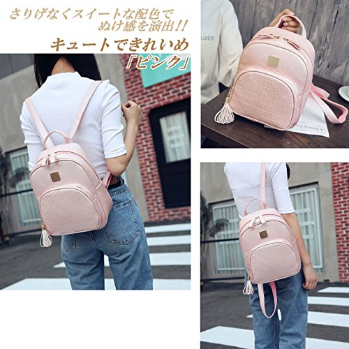 [ローアスポス] リュックサック レディース 軽量 2way OL 通勤 全4色 PU レザー 柄 タッセル付 (ピンク)