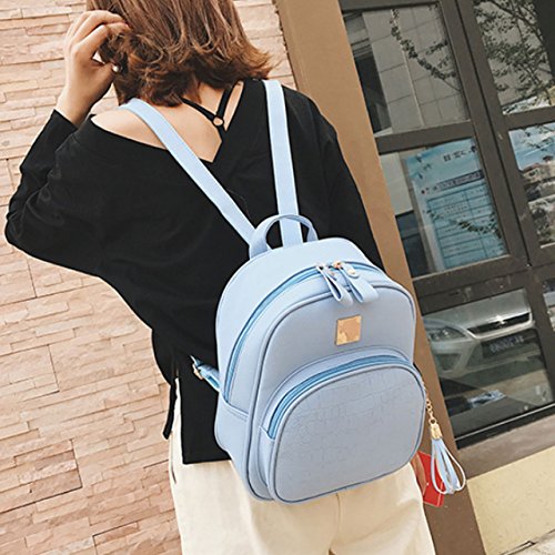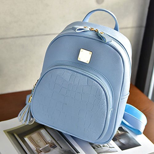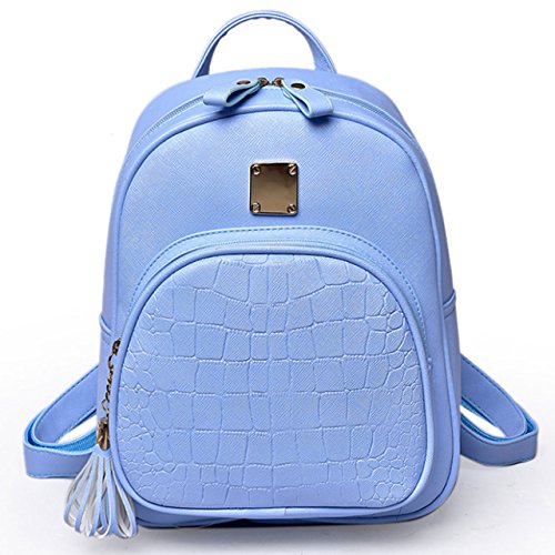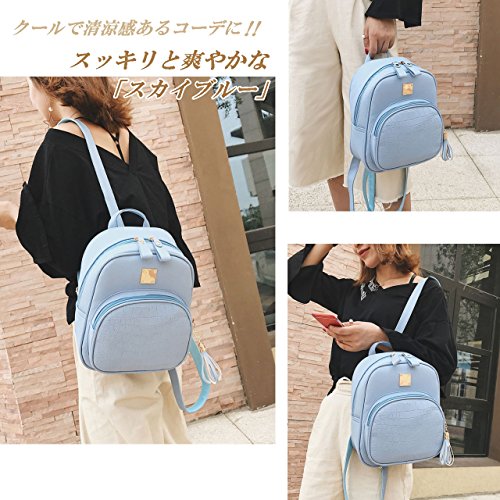[ローアスポス] リュックサック レディース 軽量 2way OL 通勤 全4色 PU レザー 柄 タッセル付 (スカイブルー)