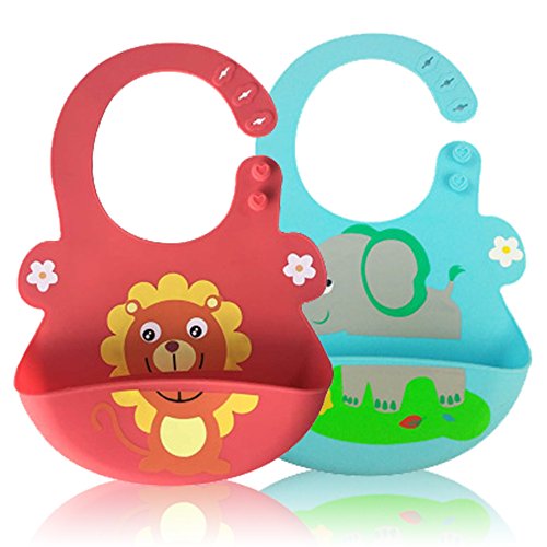 LOHOME防水シリコンBaby Bibs – 簡単にふき取るクリーンBib with Wide Food Crumb Catcherポケットソフト快適for your幼児用のセット2色