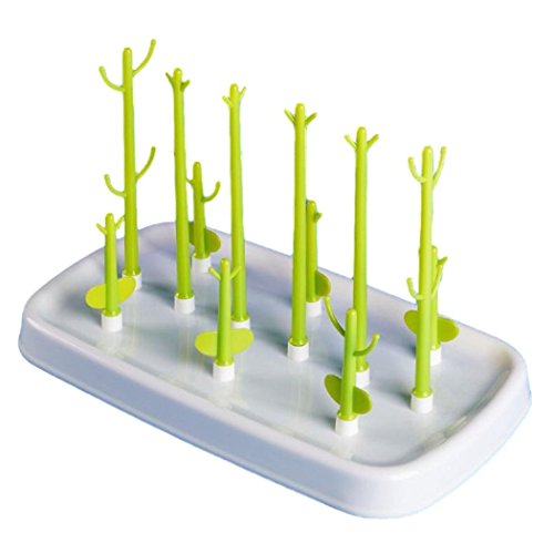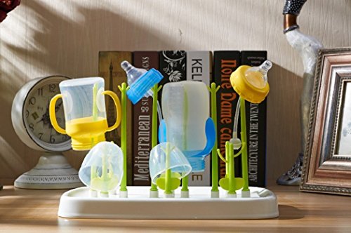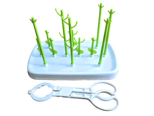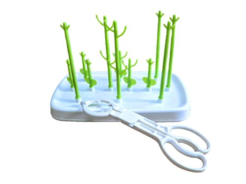 LONG-MOUNTAINS 哺乳瓶 スタンド 乾燥 殺菌 消毒 ほ乳びんラック 哺乳瓶ラック ベビー用品 ハサミ 付き 哺乳瓶入れ (グリーン/12バー(ハサミ付))