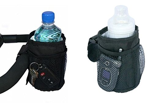 ベビーカー 保温 保冷 防水 防滴 ドリンクホルダー ネット ポケット 付 電動 自転車 車椅子 選んで便利。 (黒(10cm×14cm))