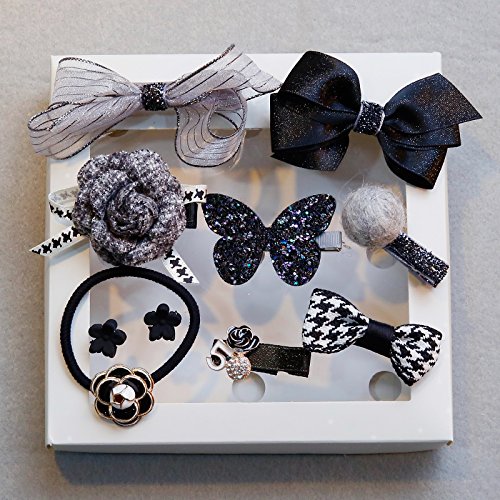 LONGPRO 子供 ヘアアクセサリー10個入りセット ボックス付き おしゃれ かわいい 髪飾り 髪留め カチューシャ 蝶結び 花 星 出産祝い 誕生日 プレゼントギフト 贈り物 (ブラック)