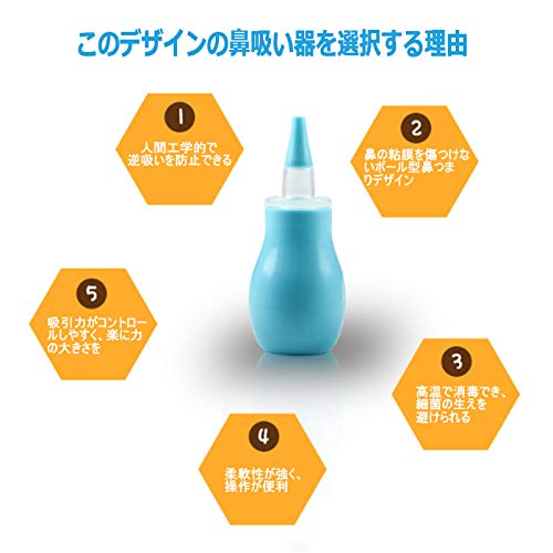 - 【鼻吸い器必要な理由】1.鼻すい器で鼻水を取り除くと耳管内に鼻水がたまるのを防ぐ可能 2.サラサラの鼻水もねばねばの鼻水も厄介 3.窒息を防ぐためにも鼻づまり対策は重要 4.鼻うがいとしても使える。