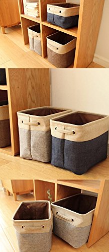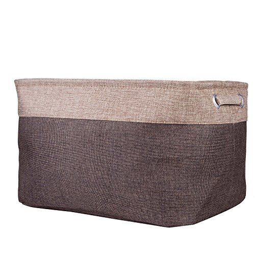 折りたたみ式ホームシェルフバスケット服オーガナイザー黄麻布ファブリックBin withハンドル ブラウン COMINHKG120397