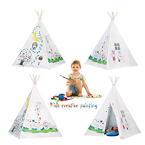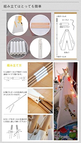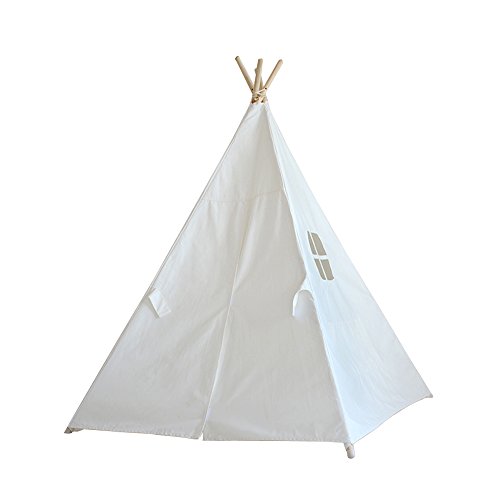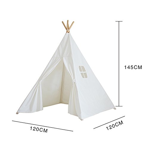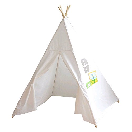 キッズ テント 室内 ティピーテント インディアン 木と布の温もり TEE PEE TENT 秘密基地 窓付き (ホワイト)