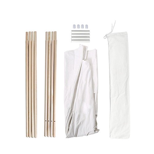 構成:上段木棒×4本、下段木棒×4本、ロープ×1本、連結パイプ×4本、テント本体×1、布袋×1、滑り止め×4