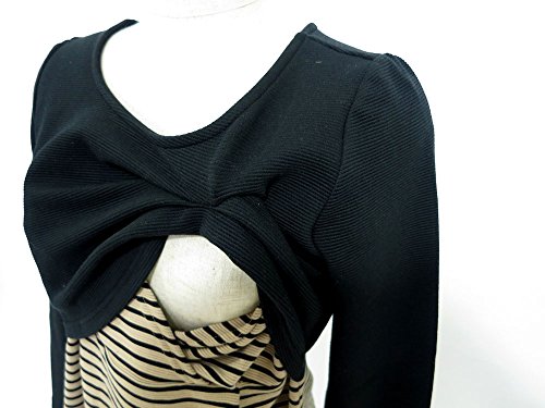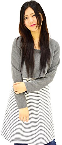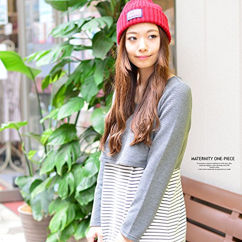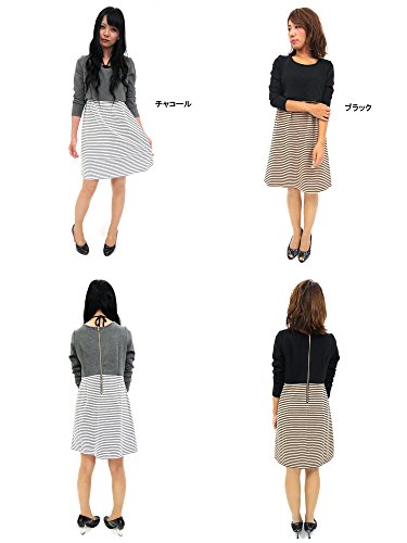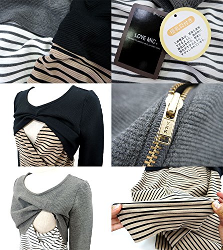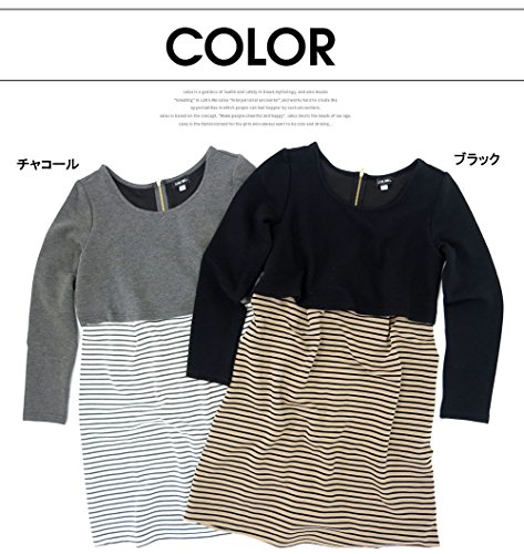 (ラブミック) LOVE MIC マタニティ ウェア ワンピース チュニック 秋 授乳口付き 授乳服 ボーダー 2color L チャコール