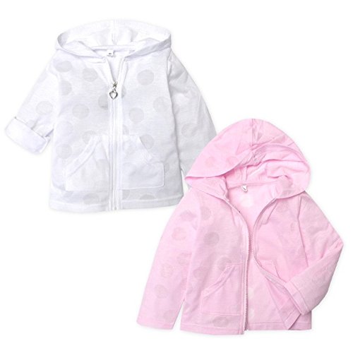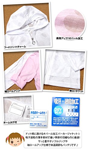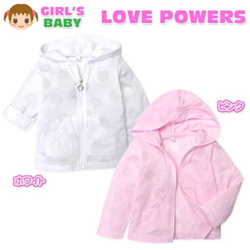 (ピンク/90cm) ベビー服 女の子 アウター フルジップ パーカー ジャケット 吸汗速乾 ドライ ドット柄 袖ロールアップ 女児 ベビー