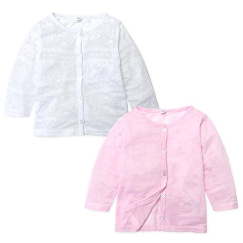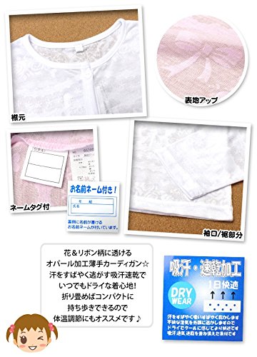 (ピンク/90cm) ベビー服 女の子 アウター カーディガン 長袖 吸汗速乾 ドライ リボン&花柄 オパール加工 丸首 ネームタグ付 女児 ベビー
