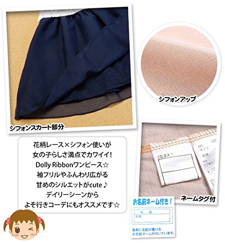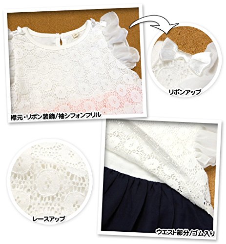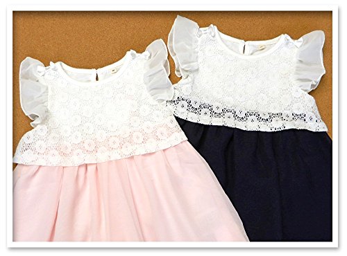 (ネイビー/80cm)ベビー服 女の子 ワンピース 半袖 花柄レース使い シフォン リボン装飾 ネームタグ付 女児 ベビー