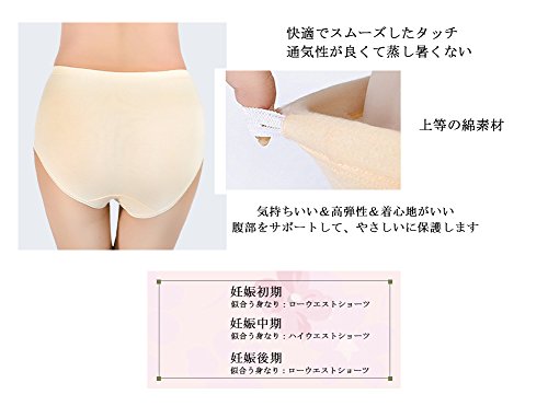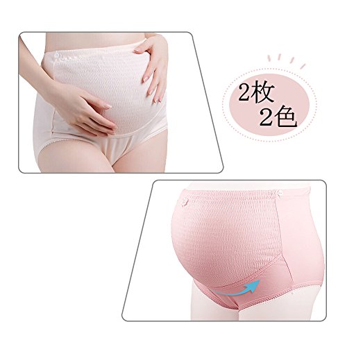 LOVE YANQI レディース ハイウエスト 調節可「産前産後兼用」肌色&ピンク2色 2枚セット 優しい綿 妊娠パンツ 下着 マタニティショーツ