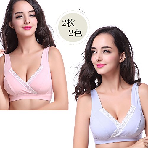 LOVE YANQI レディース 妊娠授乳ブラジャー クロスオープンタイプ ノンワイヤー 延長ホック付き「産前産後兼用」ピンク&ラベンダー やさしい綿 マタニティブラジャー 2枚セット
