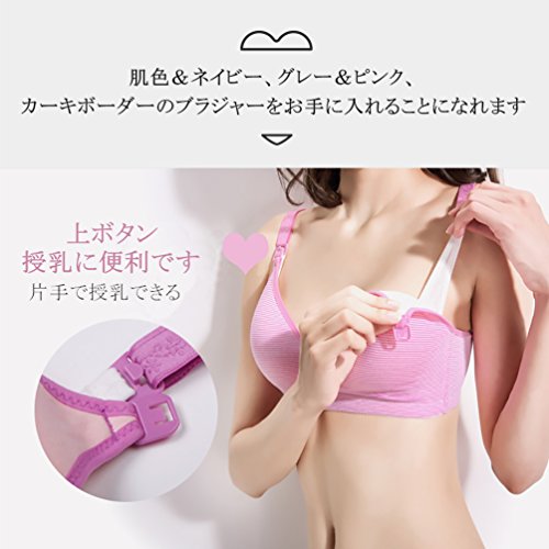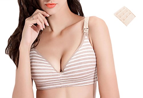 LOVE YANQI レディース 妊娠授乳ブラジャー 調節できるボタン付 2Wayオープン ノンワイヤー 延長ホック付き「産前産後兼用」カーキボーダー やさしい綿 マタニティブラジャー