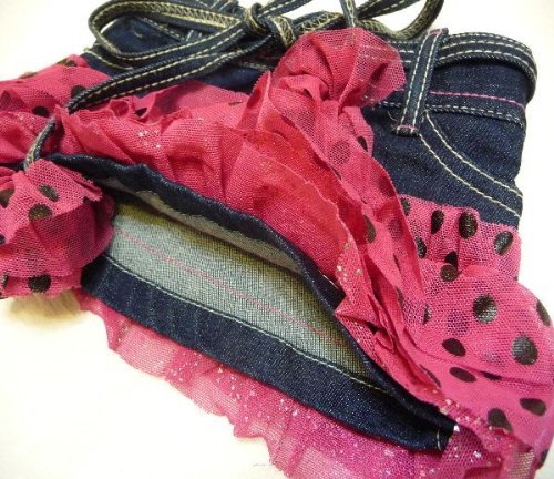(ラブエンジェル)LOVE&ANGEL ドット柄ラメレース切り替えフリフリデニムスカート [キッズ] タグサイズ15 黒