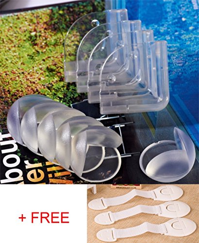 - Set of 10 corner guards(6pcs Flexible ball shape,4pcs L-shaped)and 3 cabinet locks,3M double-sided tape for corners