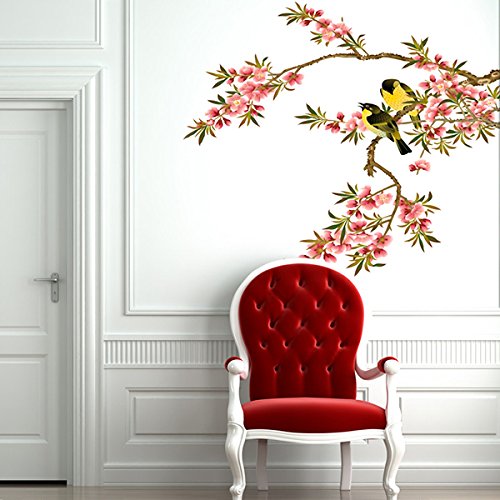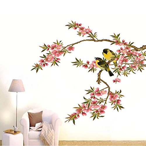 Soledi ® DIY壁デカールPeach Blossom Tree Branches Love鳥取り外し可能な壁ウォールステッカー寝室リビングルームホームアート壁デコレーション