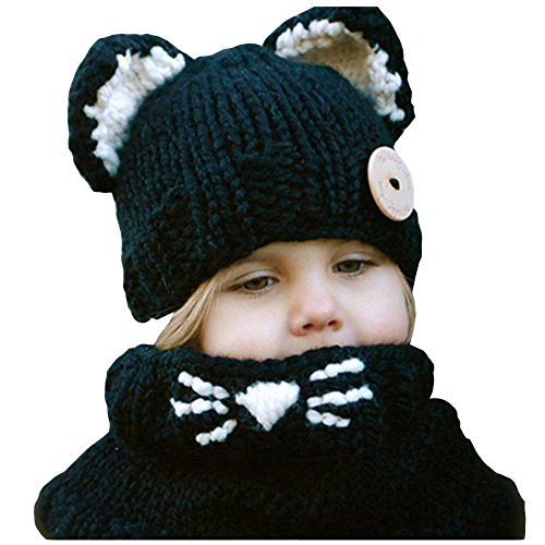 可愛いキッズ用 ベビー キッズ 赤ちゃん用 ネコちゃんキャップ+マフラーセットニット帽 あったか モフモフキュート オシャレ防寒アイテム
