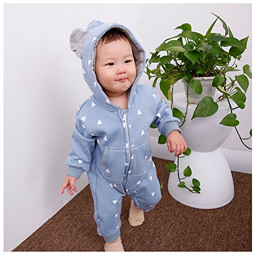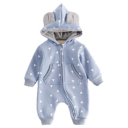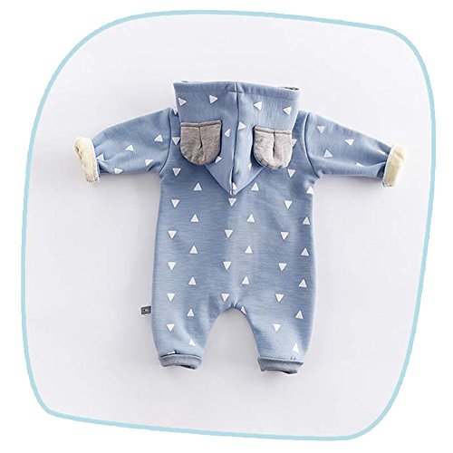 ベビー ロンパース カバーオール 子供服 ボディスーツ 可愛い赤ちゃん服 可愛い三角柄 耳付きボディスーツ 幼児 男の子 女の子 秋冬 暖かい 厚手 普段着 記念日 プレゼント お出かけ 記念撮影
