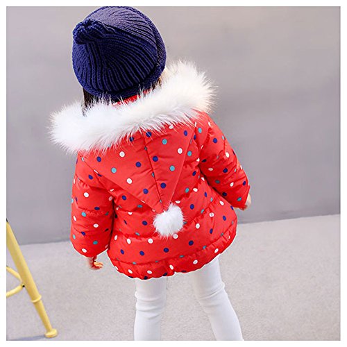 ベビー中綿コート キッズ綿ジャケットガールズ ブルゾンコート キュート女の子 ダウンアウターウエア フワフワフード付き 可愛い子供服 お姫様 無地 オシャレ水玉 韓国スタイル 中長丈 長袖 冬 暖かい 厚手 保温 軽量 防寒 防風 通園 お出かけ