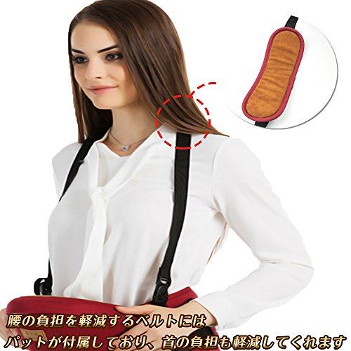 - 腰、肩の2点で支えるので従来の抱っこ紐に比べ負担が軽くなっております。