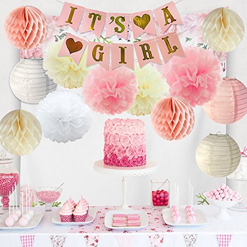 - お使いになるIt 's A Girl混合装飾鮮やかな色のペーパーポンポン、用紙のハニカムと提灯はパーティーに暖かくてエレガントな雰囲気を追加し、あなたのベビーシャワーの装飾、女の子の最初の誕生日パーティー、家の装飾としても最適です。