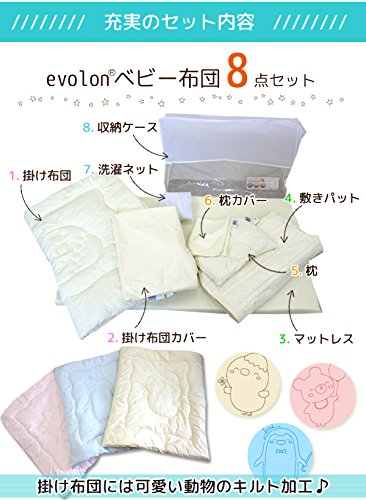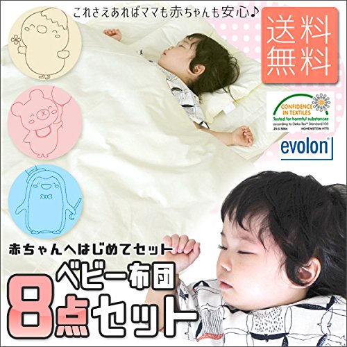 evolon ベビー布団セット 8点セット ペンギン ブルー 防ダニ効果 抜 baby 布団 アレルギー対策に 洗える 赤ちゃん ベビー お昼寝布団セット