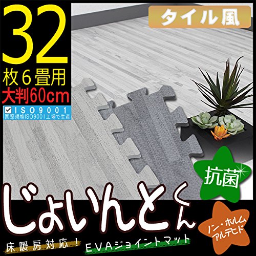 ジョイントマット EVA 木目調 木目 タイル風 大判 60cm 32枚 6畳 床暖房対応 厚め グレー