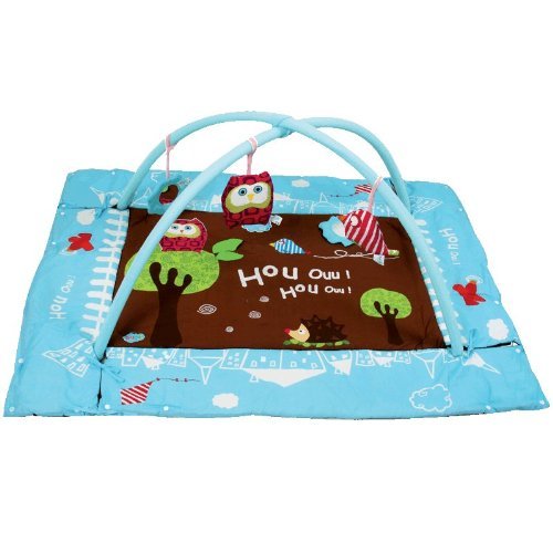 Fabric play mat with arches;Many stimulating accessories for baby, such as a mirror, rattle, beeper, rustling paper, hide and seek bits, and bell;3 detachable accessories on the arch