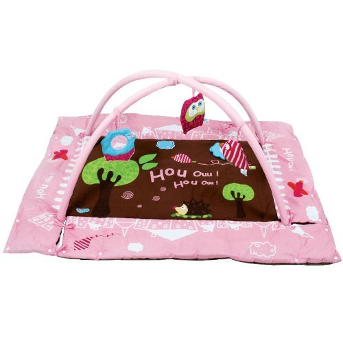 Owl-themed activity play mat with arch;Sides can be drawn up to form a cocoon;A variety of colours, fun shapes, and diverse textures to help wake your baby up;Sensory accessories: mirror, rattle, horn, crinkle paper, etc. Develops dexterity and motor coordination;Machine washable (cold)