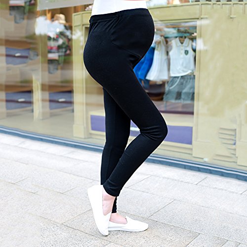 レギンス マタニティ 妊娠中 マタニティパンツ ズボン レディース スリム 調整可能 春夏秋 (XXL, ブラック)