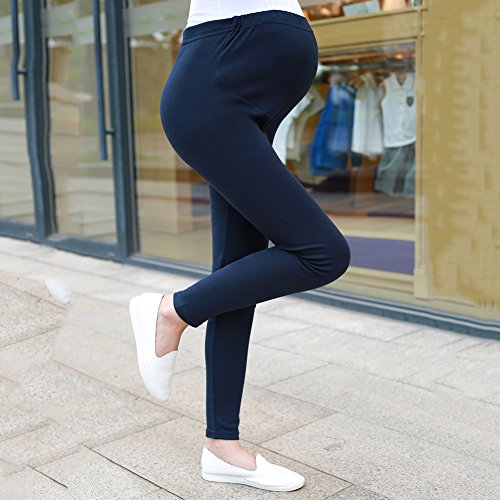 レギンス マタニティ 妊娠中 マタニティパンツ ズボン レディース スリム 調整可能 春夏秋 (XXL, 紺青)