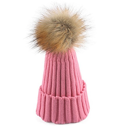 ニット 帽子 キャップ キッズ 秋冬 子供用 無地 男女兼用 可愛い 防寒 (ピンク)