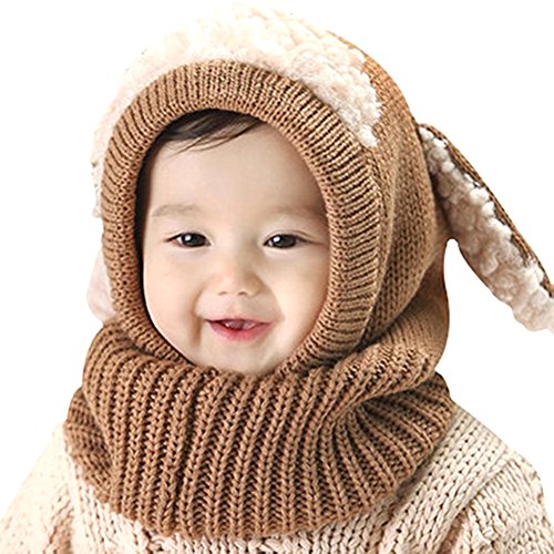 ニット帽子 キッズ 赤ちゃん用 ベビー 兎耳 ハット 子ども 女の子 男の子 可愛い 防寒 (ブラウン)