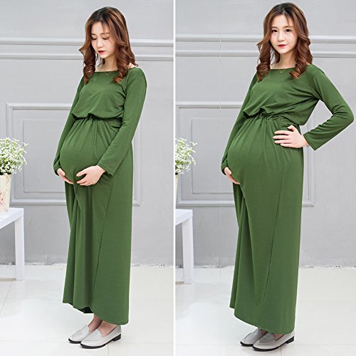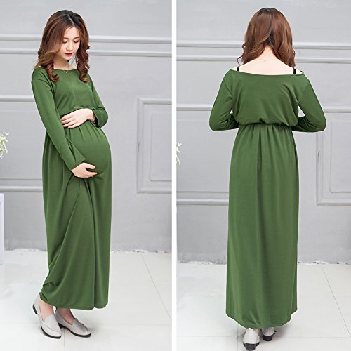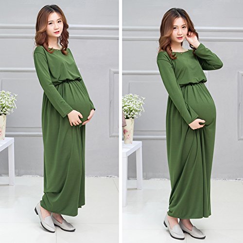 ワンピース ドレス 女性 マタニティ 妊娠 長袖 写真 道具 撮影 ソフト (アーミーグリーン)