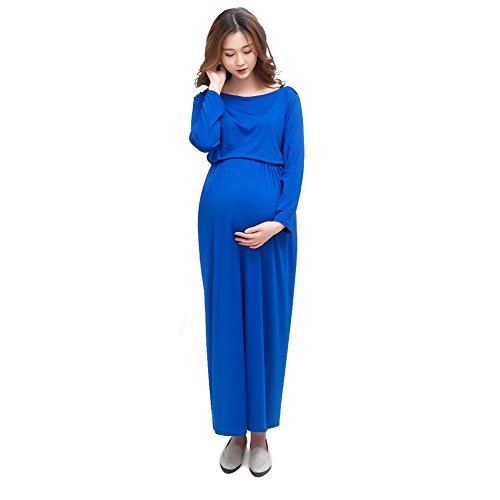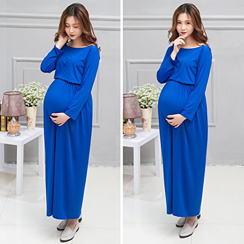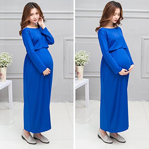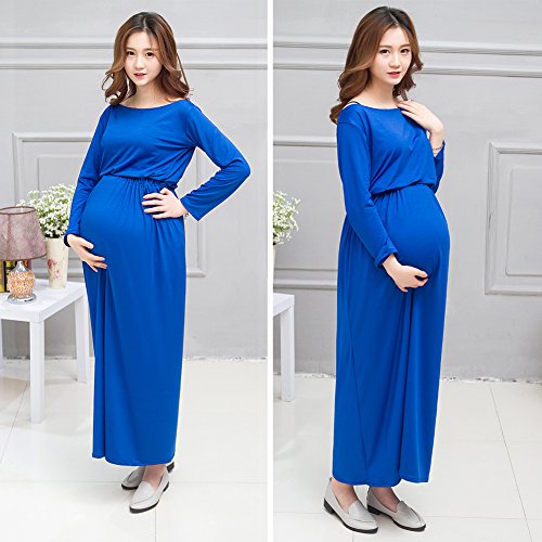 ワンピース ドレス 女性 マタニティ 妊娠 長袖 写真 道具 撮影 ソフト (ブルー)