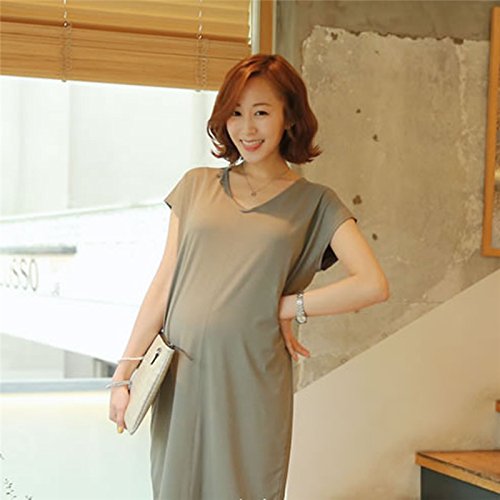マタニティ ドレス ワンピース 女性 レディース 産前 産後 ゆったり 柔らかい お洒落 半袖 (XL)