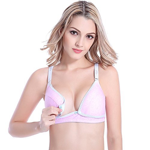 LUERME 授乳ブラジャー 妊婦用 前開き ボタン付き 授乳便利 産前産後 柔らかい 100%綿 (M, ピンク)