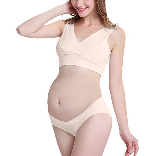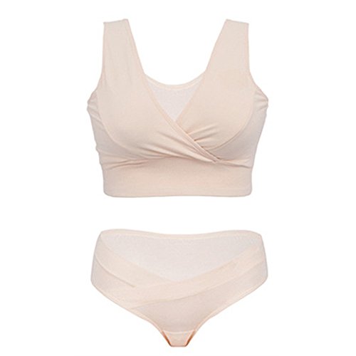 ブラジャー マタニティ 下着 授乳服 ヨガ用ブラ パンツ 二点セット スチールリングなし 妊娠中 女性 睡眠用 ベスト型 (XXXL, 肌の色)