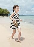 M.Z.L 可愛い 女の子 ワンピース ボーダー柄 子供服 海辺 女児 キッズ ブラック レッド (130cm, ブラック)