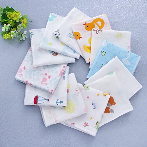 LUOEM ガーゼハンカチ ベビーバンダナ 唾液タオル かわいい 4層 綿 25x25㎝ (ランダムカラー)