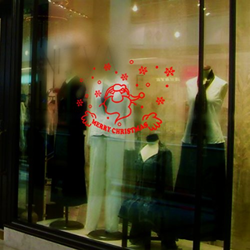 1×赤いサンタクロース窓のステッカーの言葉メリークリスチャンウォールステッカービニール凍ったスノーフレークの装飾