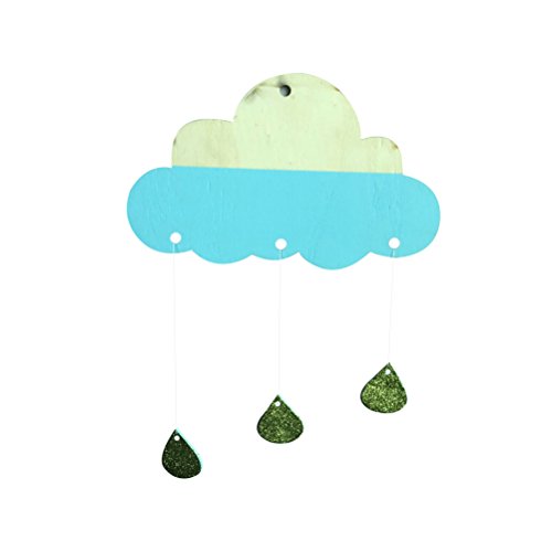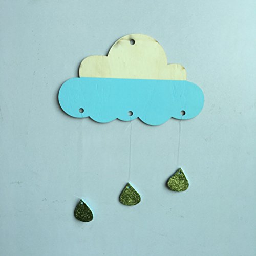 1×木製雲雨滴飾りDIYベビーキッズルームインテリアウォールステッカーベビーシャワー用壁掛けアートインテリア(ブルー)