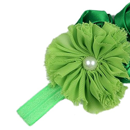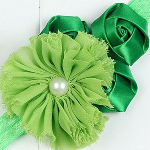 ローズフラワーとパール弾性ヘアバンドヘッドウェアアクセサリー(グリーン)1×赤ちゃんの女の子のヘッドバンド