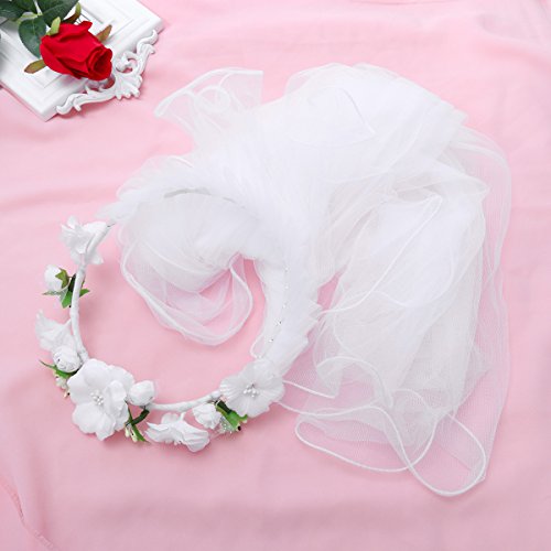 LUoemガールズフラワー花輪ベール最初聖体ベールヘッドバンドウェディング装飾用(ホワイト)