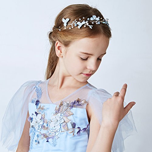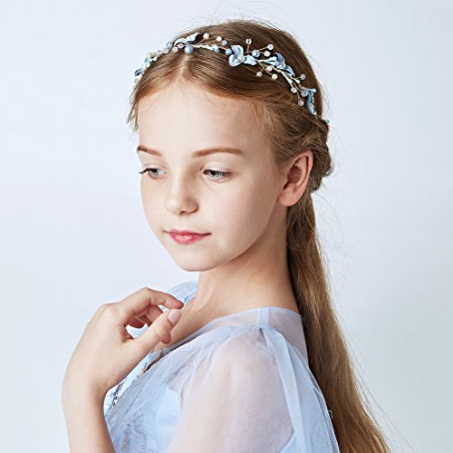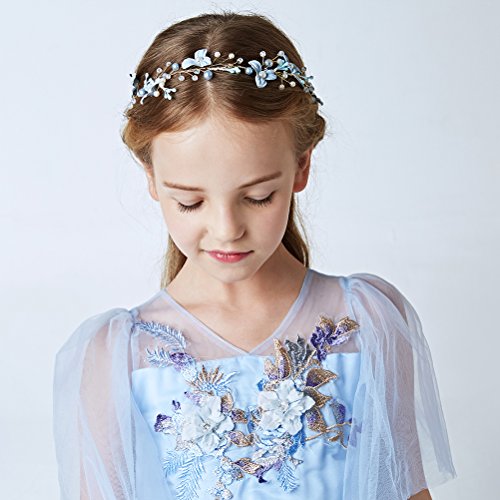 LUoemフラワーガールカチューシャクラウン花柄パールフラワーヘアVinesウェディングブライダルヘッドギア